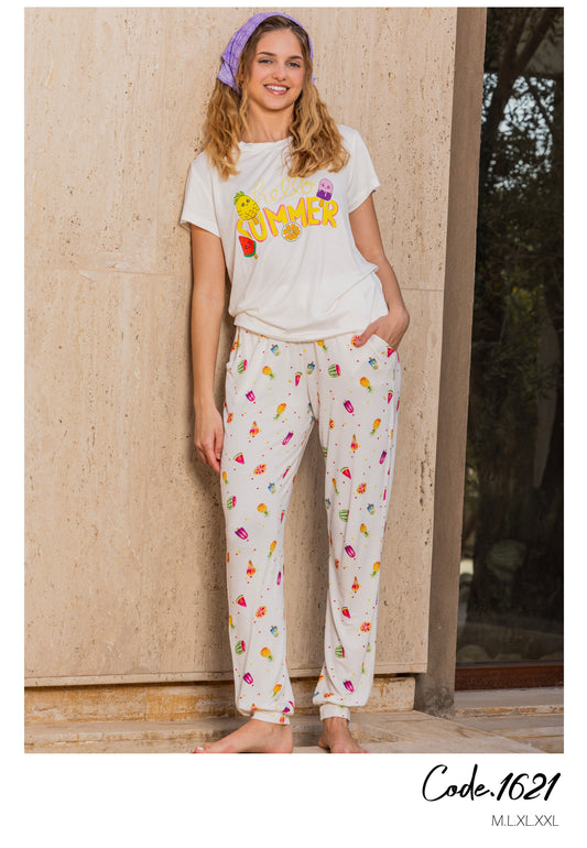 Hello Summer 🍉🍊🍍🍦بيجامة بنطلون